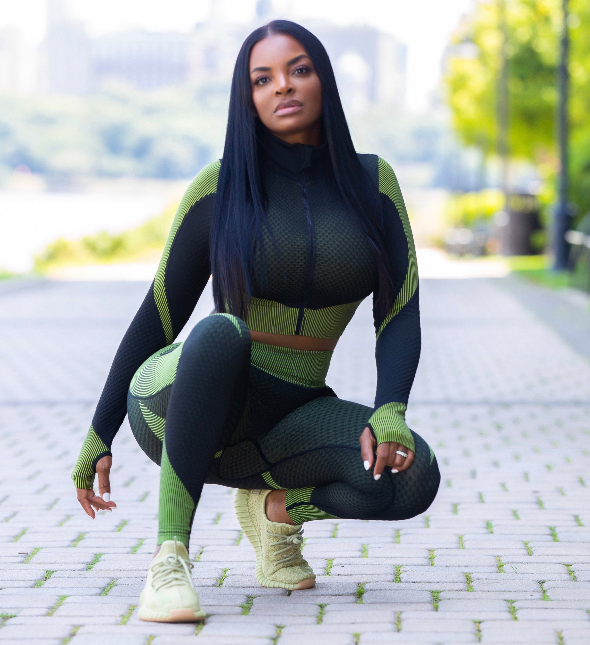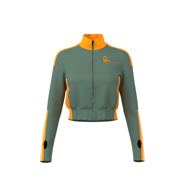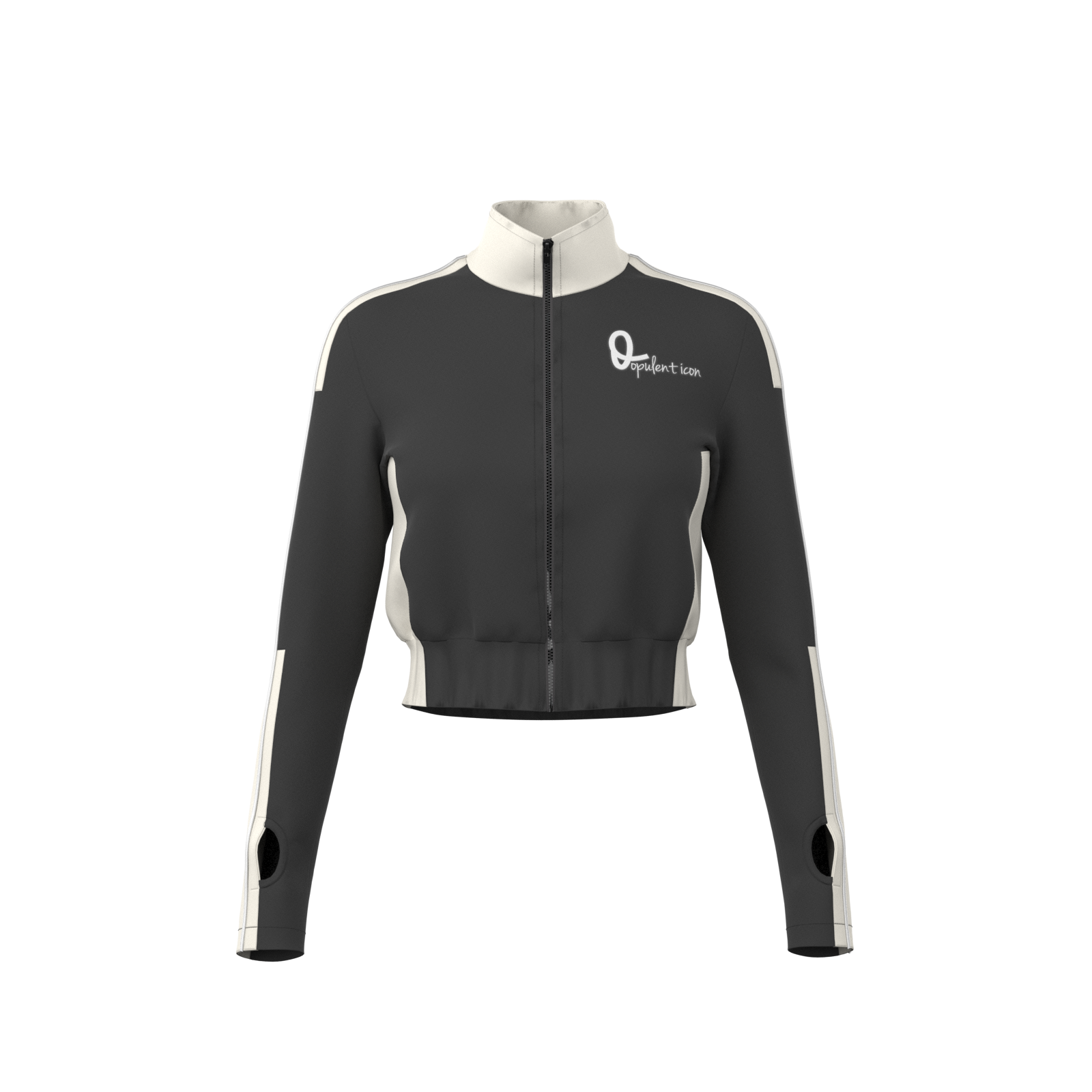 Sleek zip-up crop jacket with thumbholes, built for flexibility, comfort, and effortless style.