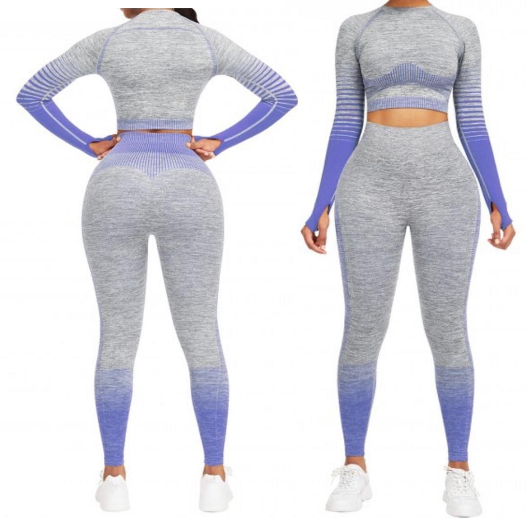 Make every move count in the Vapor Pant Set, designed for flexibility, performance, and style. Detailed with contrast gradient contour lines that sculpt and flatter your curves, this two-piece activewear set features a seamless long-sleeve crop top with thumbholes and high-waist leggings. Crafted from high-elastic, moisture-wicking, quick-drying fabric, it delivers breathable comfort and a sleek, form-fitting silhouette. Perfect for yoga, cycling, running, or all-day wear, the Vapor Pant Set embodies the essence of confidence in motion.